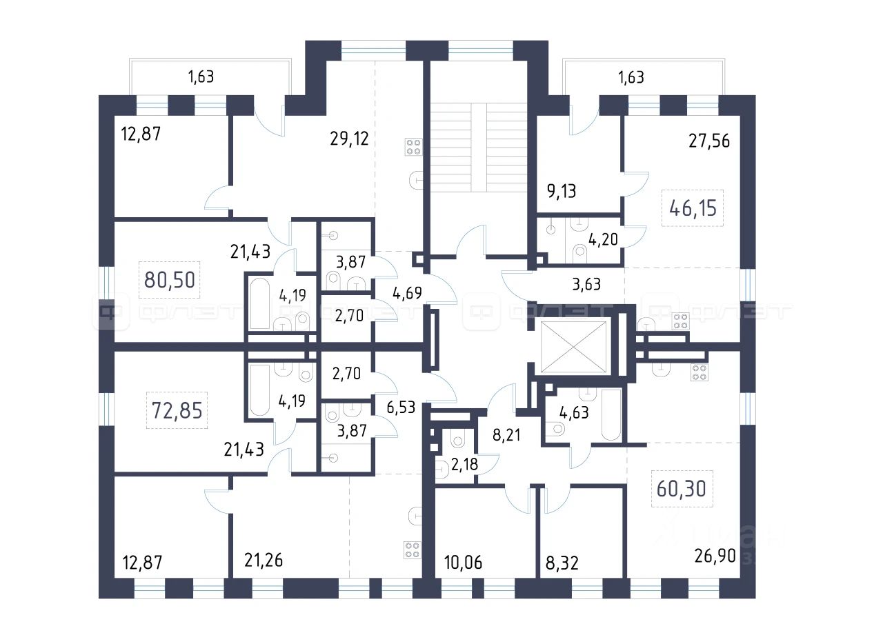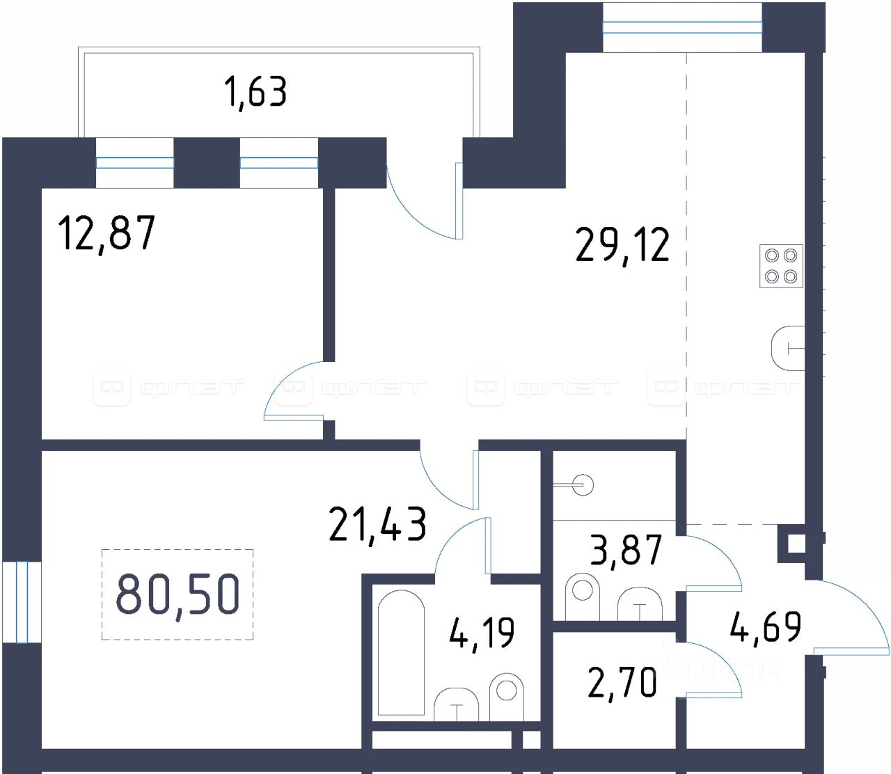 2-комнатная квартира 80.5 м² на 3 этаже в строящемся клубном доме премиального-класса "Уналты".