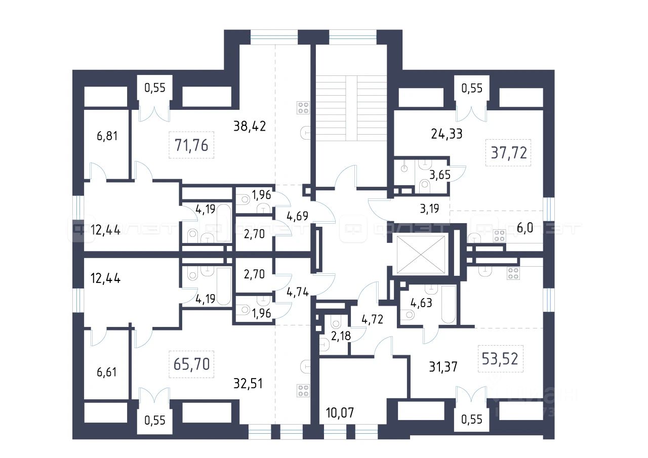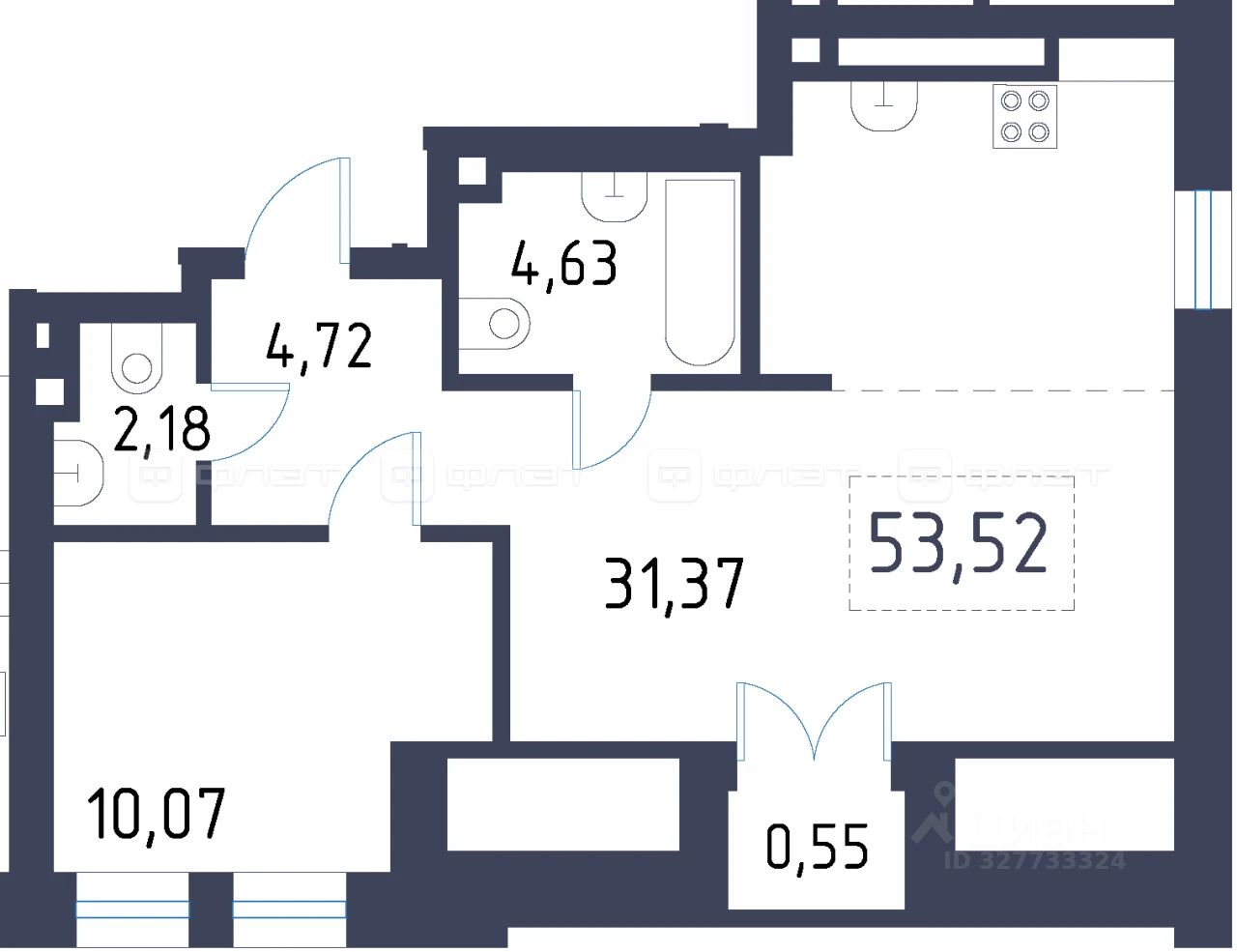1-комнатная квартира 53.52 м² на 4 этаже в строящемся клубном доме премиального-класса "Уналты".