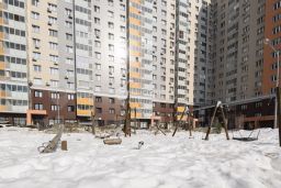 Двор с благоустроенными детскими площадками и озеленением, местами для занятий спортом и зонами отдыха.
