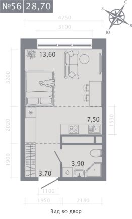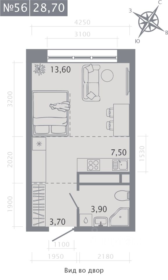 Продаётся студия в строящемся доме (Корпус 2), срок сдачи: I-кв. 2029, общей площадью 28.7 кв.м., на 5 этаже.