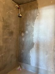 Стены: мелкоштучный строительный материал; санузел — оштукатуривание поверхности раствором