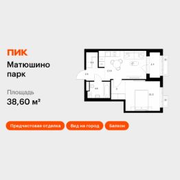 Продаётся 1-комн. квартира площадью 38,6 кв.м на 13 этаже 17 этажного дома (Корпус 5.1, Секция 1) проекта ПИК Матюшино парк. Светлый просторный подъезд на уровне земли, функциональная планировка, большие окна, предчистовая отделка.