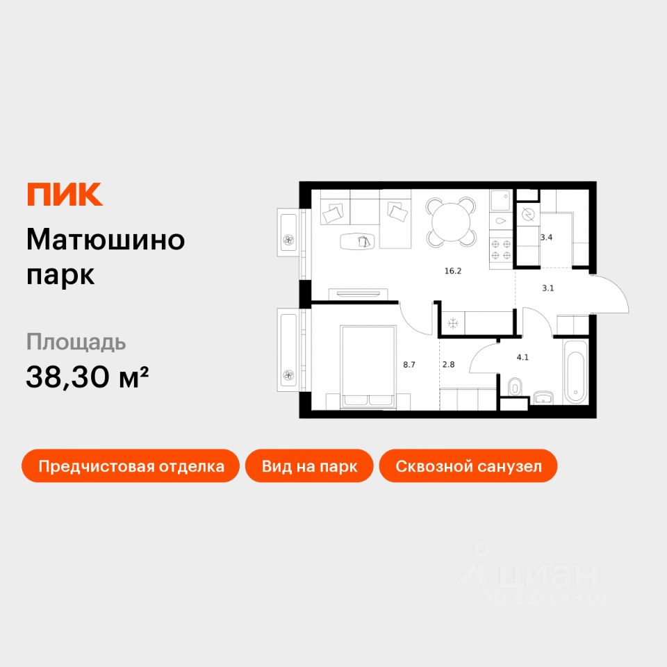 Продаётся 1-комн. квартира площадью 38,3 кв.м на 16 этаже 17 этажного дома (Корпус 5.1, Секция 1) проекта ПИК Матюшино парк. Светлый просторный подъезд на уровне земли, функциональная планировка, большие окна, предчистовая отделка.