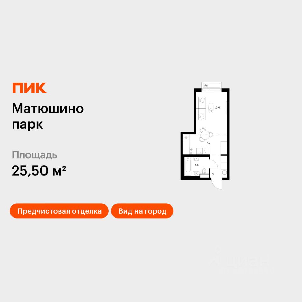 Продаётся квартира-студия площадью 25,5 кв.м на 15 этаже 17 этажного дома (Корпус 5.1, Секция 1) проекта ПИК Матюшино парк. Светлый просторный подъезд на уровне земли, функциональная планировка, большие окна, предчистовая отделка.