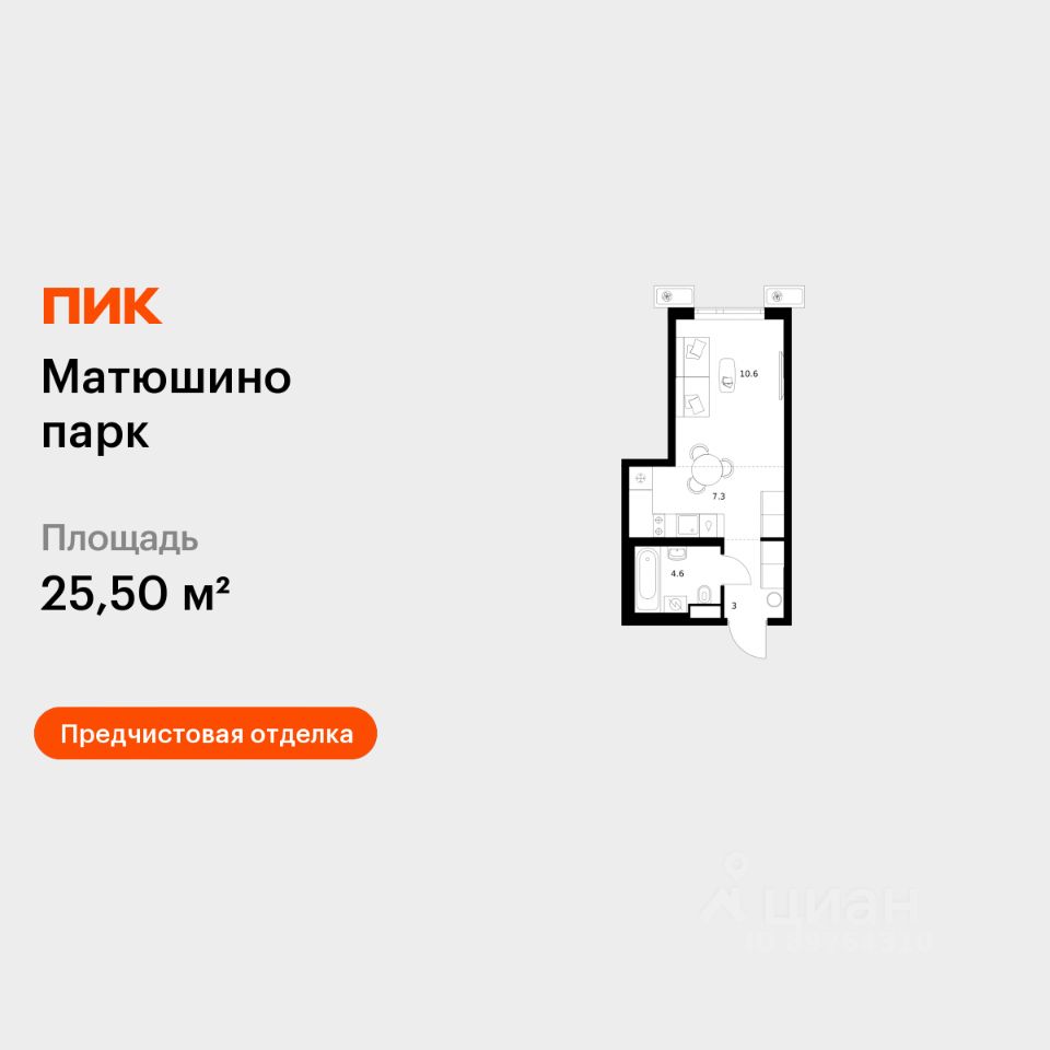 Продаётся квартира-студия площадью 25,5 кв.м на 3 этаже 17 этажного дома (Корпус 5.1, Секция 1) проекта ПИК Матюшино парк. Светлый просторный подъезд на уровне земли, функциональная планировка, большие окна, предчистовая отделка.