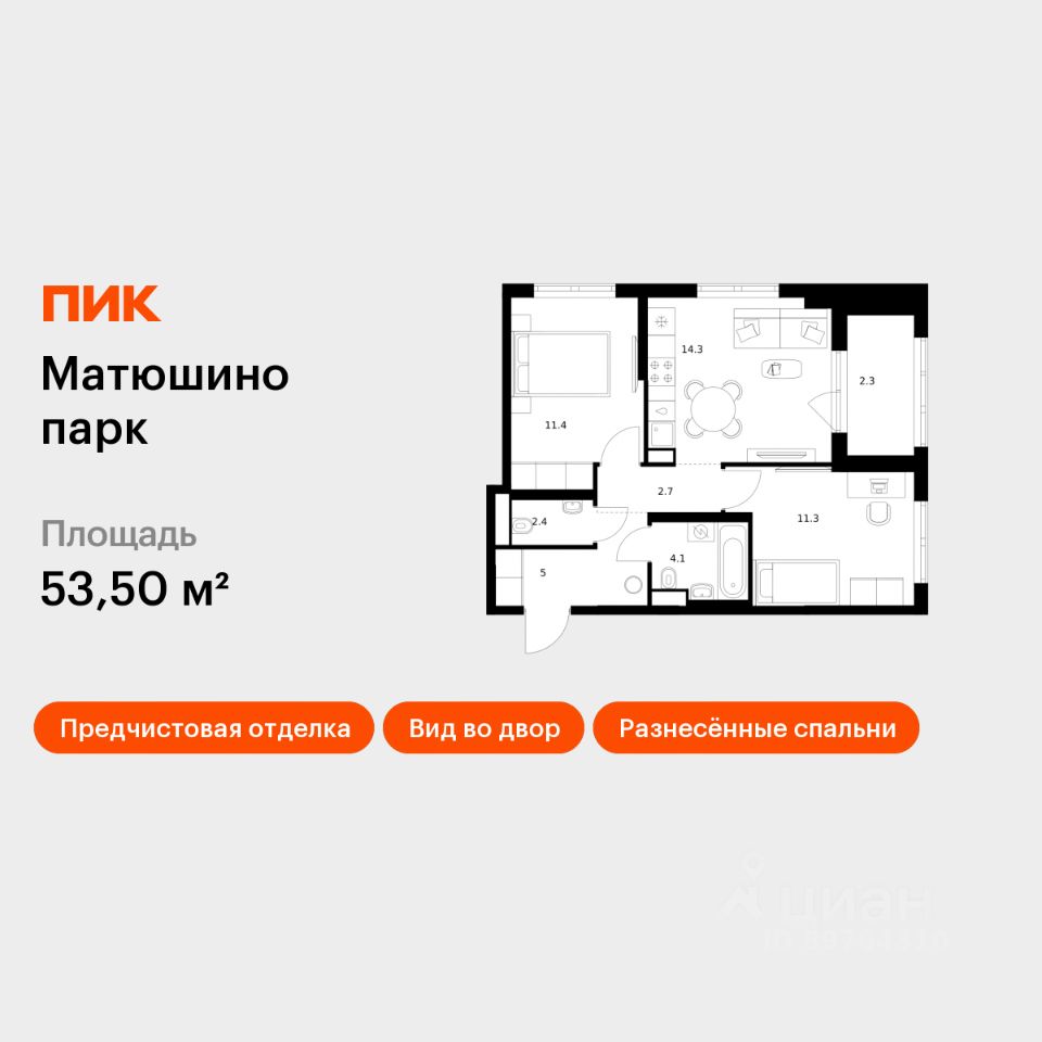 Продаётся 2-комн. квартира площадью 53,5 кв.м на 2 этаже 22 этажного дома (Корпус 5.2, Секция 2) проекта ПИК Матюшино парк. Светлый просторный подъезд на уровне земли, функциональная планировка, большие окна, предчистовая отделка.
