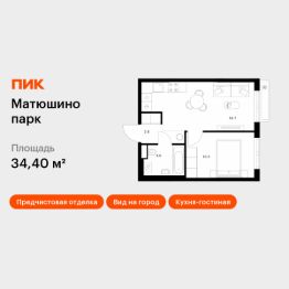 Продаётся 1-комн. квартира площадью 34,4 кв.м на 14 этаже 22 этажного дома (Корпус 5.2, Секция 2) проекта ПИК Матюшино парк. Светлый просторный подъезд на уровне земли, функциональная планировка, большие окна, предчистовая отделка.
