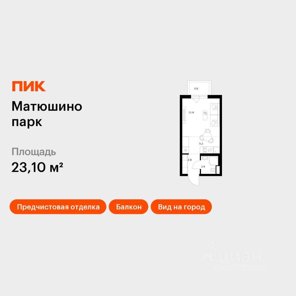 Продаётся квартира-студия площадью 23,1 кв.м на 7 этаже 22 этажного дома (Корпус 5.2, Секция 2) проекта ПИК Матюшино парк. Светлый просторный подъезд на уровне земли, функциональная планировка, большие окна, предчистовая отделка.