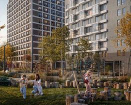 Квартал состоит из 20 корпусов с современной архитектурой.