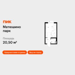Продаётся квартира-студия площадью 20,5 кв.м на 20 этаже 22 этажного дома (Корпус 5.2, Секция 2) проекта ПИК Матюшино парк. Светлый просторный подъезд на уровне земли, функциональная планировка, большие окна, предчистовая отделка.