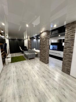 Просторная евродвушка (распашонка) с панорамным видом на город и Волгу. Дизайнeрcкий ремoнт. 2 балкона с новым остеклением и отделкой гипсовым камнем. Кондиционер в кухне-гостиной.