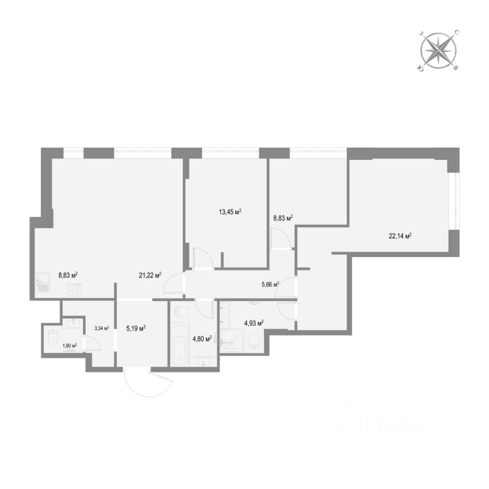 Продается 3-комнатная квартира, 4 этаж, 96.69 м², в 5 минутах от метро "Суконная слобода".