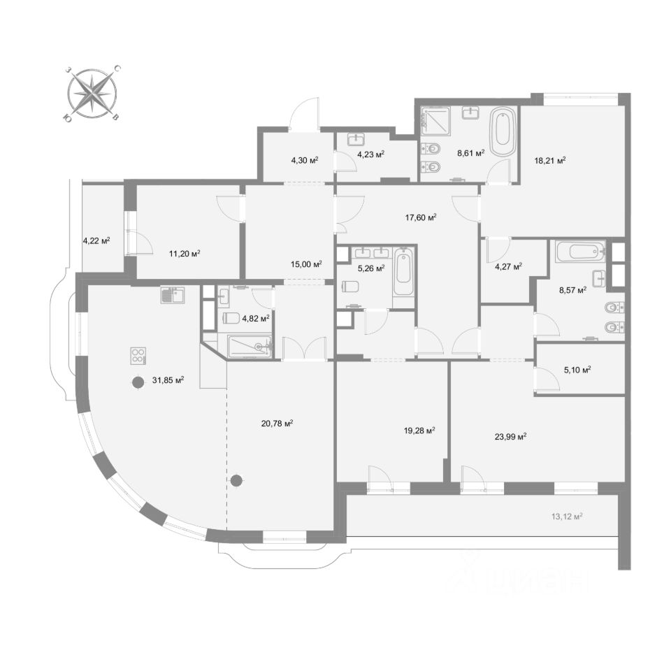 Продается 4-комнатная квартира, 7 этаж, 210.02 м², в 5 минутах от метро "Суконная слобода".