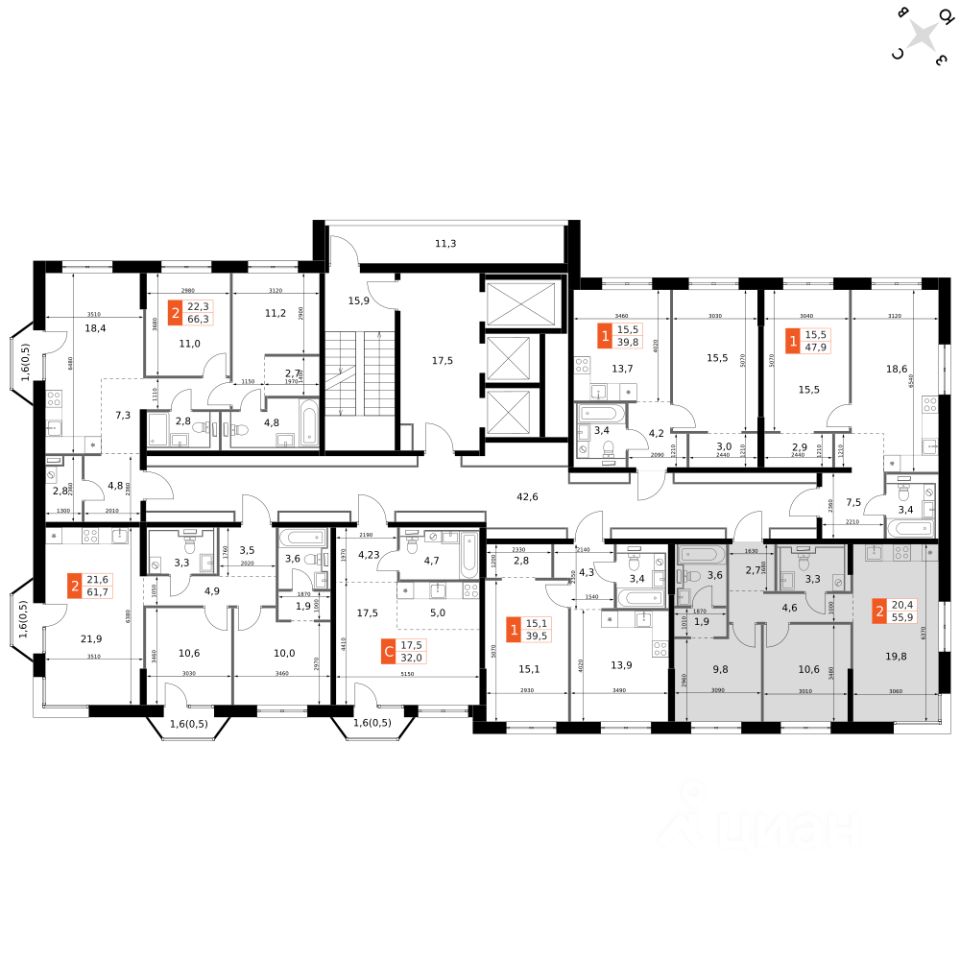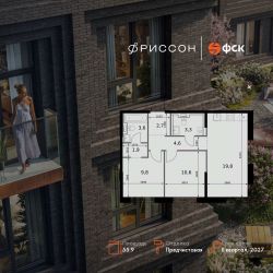 Продаётся 2-к квартира номер 59 общей площадью 55.9 кв.м. на 11-м этаже 20 этажного здания. Предчистовая отделка. Цена с учётом скидки.