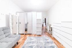 Квартира сорок три квадратных метра с правильной планировкой и прекрасной большой лоджией в которую можно выйти как из кухни так и из комнаты.