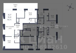 2-комнатная квартира 102.74 м² на 5 этаже в строящемся доме элитного-класса Жилого комплекса "Променад".