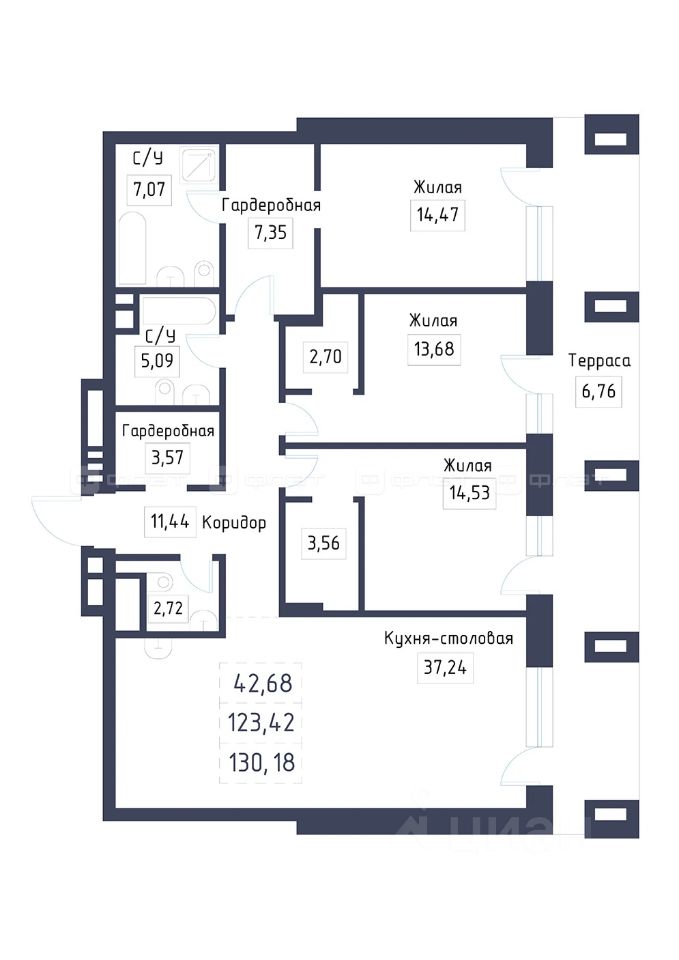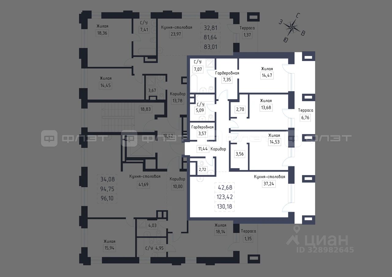3-комнатная квартира 130.18 м² на 3 этаже в строящемся доме элитного-класса Жилого комплекса "Променад".