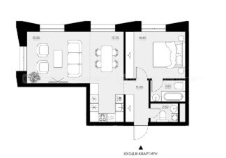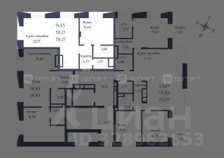 1-комнатная квартира 58.21 м² на 4 этаже в строящемся доме элитного-класса Жилого комплекса "Променад".