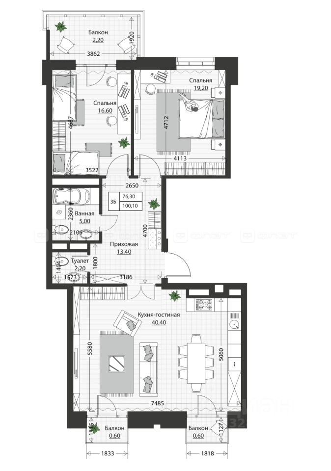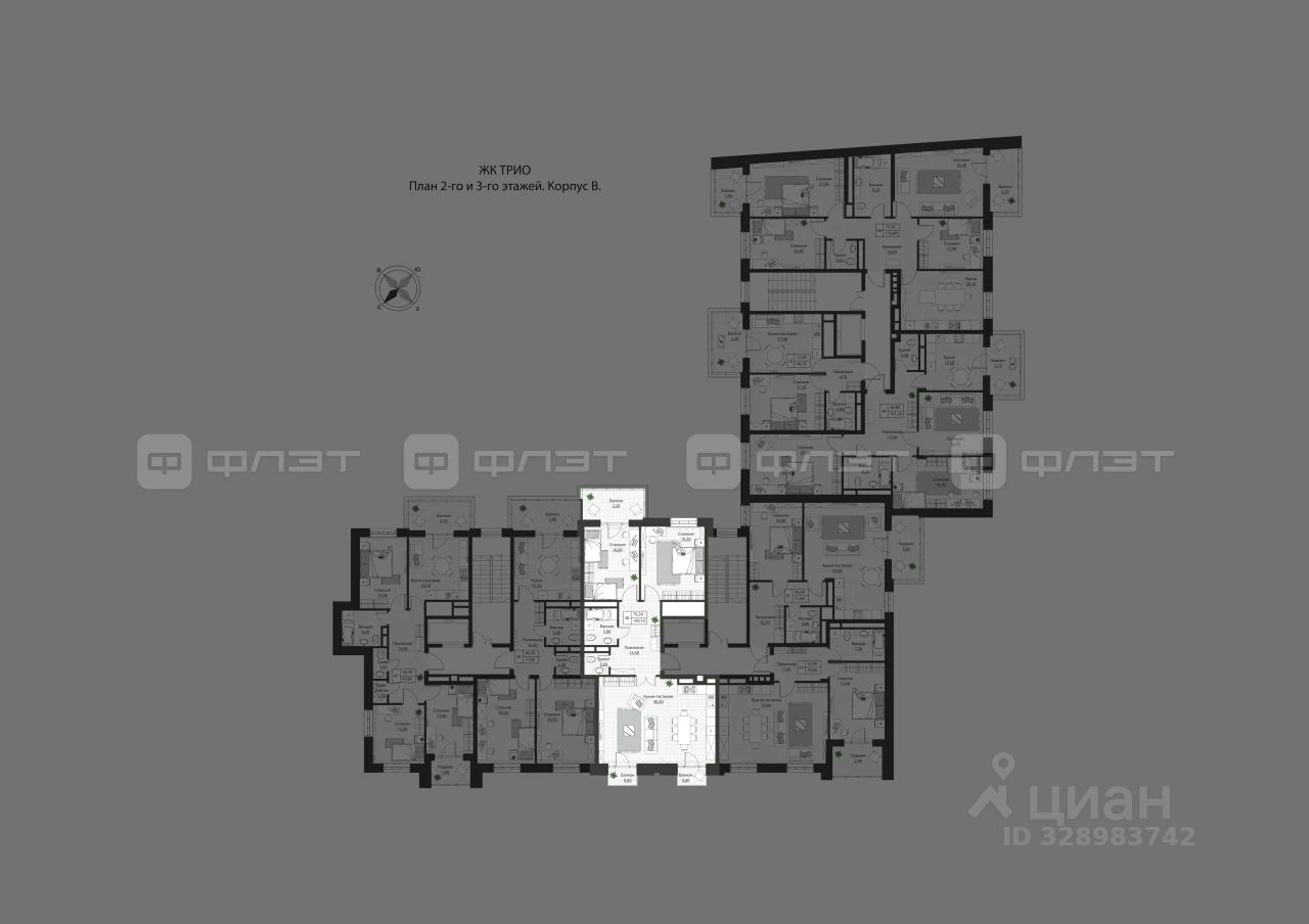3-комнатная квартира 101.4 м² на 2 этаже в строящемся доме бизнес-класса Жилого комплекса "TRIO".