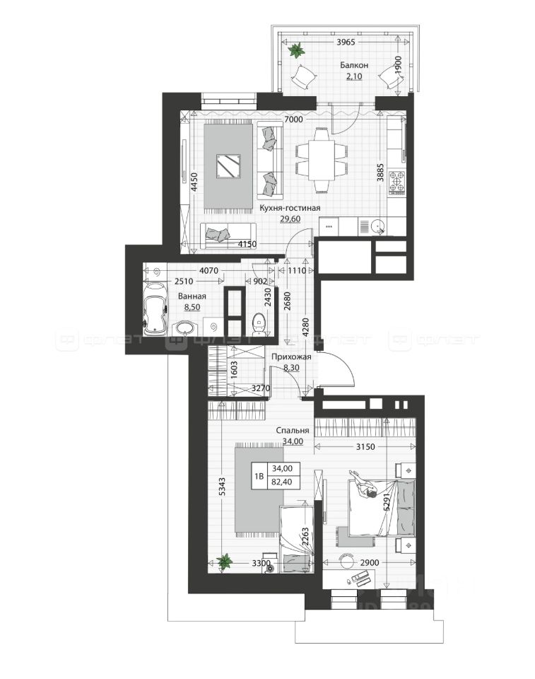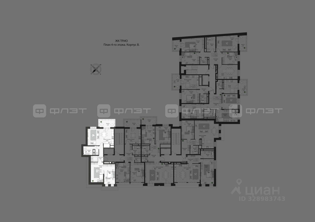 1-комнатная квартира 81 м² на 4 этаже в строящемся доме бизнес-класса Жилого комплекса "TRIO".