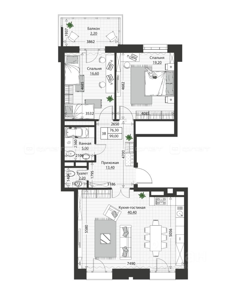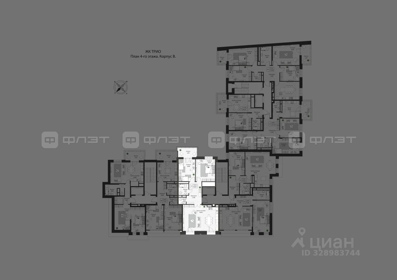 3-комнатная квартира 99.4 м² на 4 этаже в строящемся доме бизнес-класса Жилого комплекса "TRIO".