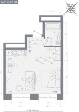 Продаётся 1-комнатная квартира в строящемся доме (Дом 2), срок сдачи: IV-кв. 2027, общей площадью 37.5 кв.м., на 16 этаже.