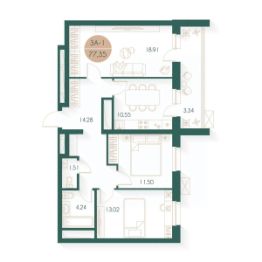 Общая площадь77,35 м²