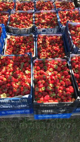 Площадь участка 14,5 га. Из них засажено клубникой 5 га. Сорта клубники Ароза, Клери и Прими.
