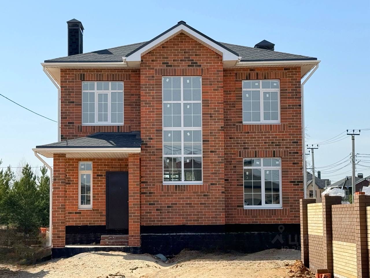 Дом полностью построен из керамического кирпича, мягкая кровля, фундамент ленточно-свайный, произведена гидроизоляция фундамента.