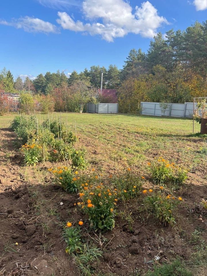 Земельный участок 11 соток (ЛПХ) ровный, с плодоносящим садом и газоном, участок по периметру огорожен забором 2м (профнастил) , отдельный вход (калитка). Ширина участка 27м , газ на участке , электрический столб около забора.