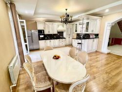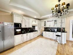 Просторная кухня-гостиная с выходом на террасу. Кухня оборудована дорогим гарнитуром и встроенной техникой.