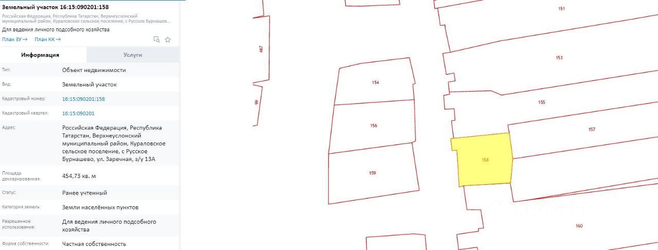 Кадастровый номер участка 16:15:090201:158-4,54 сот