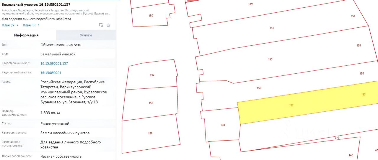 Кадастровый номер участка 16:15:090201:157-13,0 сот