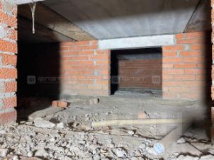 Между цоколем и первым этажом плиты перекрытия.