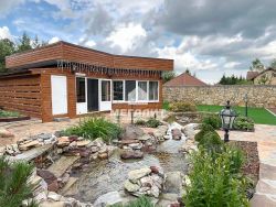 Придомовая территория усадьбы распланирована в лучших традициях ландшафтного дизайна: мягкие аккуратные газоны, ели, кедр и декоративные деревья, оригинальные композиции из кустарников, дорожки, выложенные брусчаткой, яркие клумбы, зоны отдых, пруд. Тут вы всегда найдете уединенный уголок, где можно насладиться тишиной и полюбоваться на природу.