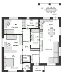 Входная группа, прихожая, гардеробная комната, просторная кухня-гостиная с выходом на террасу, 2 жилые комнаты, мастер-спальня с санузлом, большой санузел, котельная комната;