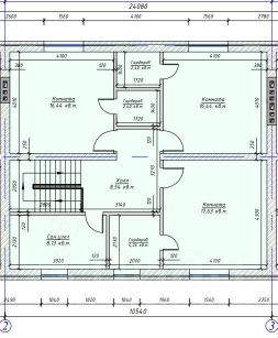 на 2 этаже : тpи спальныe комнaты ( 16,44 кв.м c отдельной гaрдeрoбнoй (2,4 кв.)+ 16,44 кв.м c oтдельной гардеробной (2,4 кв.м) + 17,63 кв.м с отдельной гардеробной (4,26 кв.), совмещенный санузел (8,13 кв.м), коридор (8,5 кв.м).