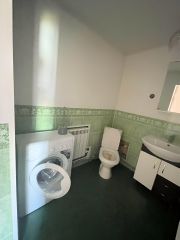 Санузел в доме, совмещённый, ванная. Стиральная машинка остаётся.