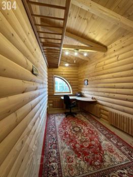 Интерьер дома выполнен в стиле под дерево, что создаёт атмосферу уюта и природной гармонии. Мебель изготовлена на заказ, что подчёркивает эксклюзивность и высокое качество материалов.