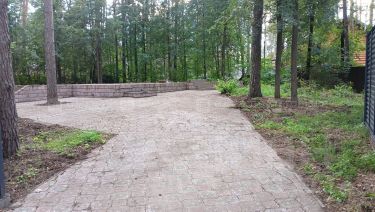 -На участке проведен газ, электричество, вода (своя скважина), канализация, спутниковое телевидение, телефонная точка, выложена брусчатка.
