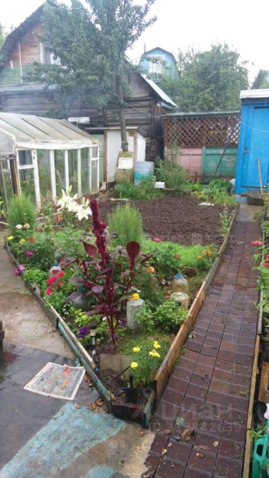 Участок ровный и ухоженный с красивым цветущим садом.