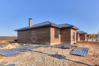 Объект 92394 Кирпичный дом в закрытом коттеджном поселке. Проходит по программам господдержка и семейная ипотека. Лаишевский район, направление Оренбургского тракта, новый коттеджный поселок Тургай Deluxe Village. Элитный посёлок спроектирован как единое архитектурное пространство, включает в себя жилую коттеджную застройку и ряд объектов для досуга, комфорта и безопасности жильцов. Спроектировано 42 дома, зона отдыха, детская площадка, торговый центр, асфальтированные дороги на всей территории коттеджного поселка, включая и подъезды к участкам, освещаемые в тёмное время суток. Электроснабжение, водоснабжение из артезианской скважины, канализационная система, газоснабжение и газовое отопление, телекоммуникационные сети в каждом доме. Въезд только через КПП, шлагбаум, видеонаблюдение 24/7. Дом общей площадью 126 кв.м. из керамического кирпича 2.1-НФ на 6 сотках земли, ИЖС. Дом одноэтажный, три изолированные спальни, кухня-гостиная 31,5 кв.м. с выходом на террасу 22,5 кв.м., просторный холл, большой сан узел, котельная, теплый тамбур. Дом продается в качественной предчистовой отделке, которая включает в себя заведенные коммуникации, радиаторы, двухконтурной котел, теплый пол по всему периметру дома.