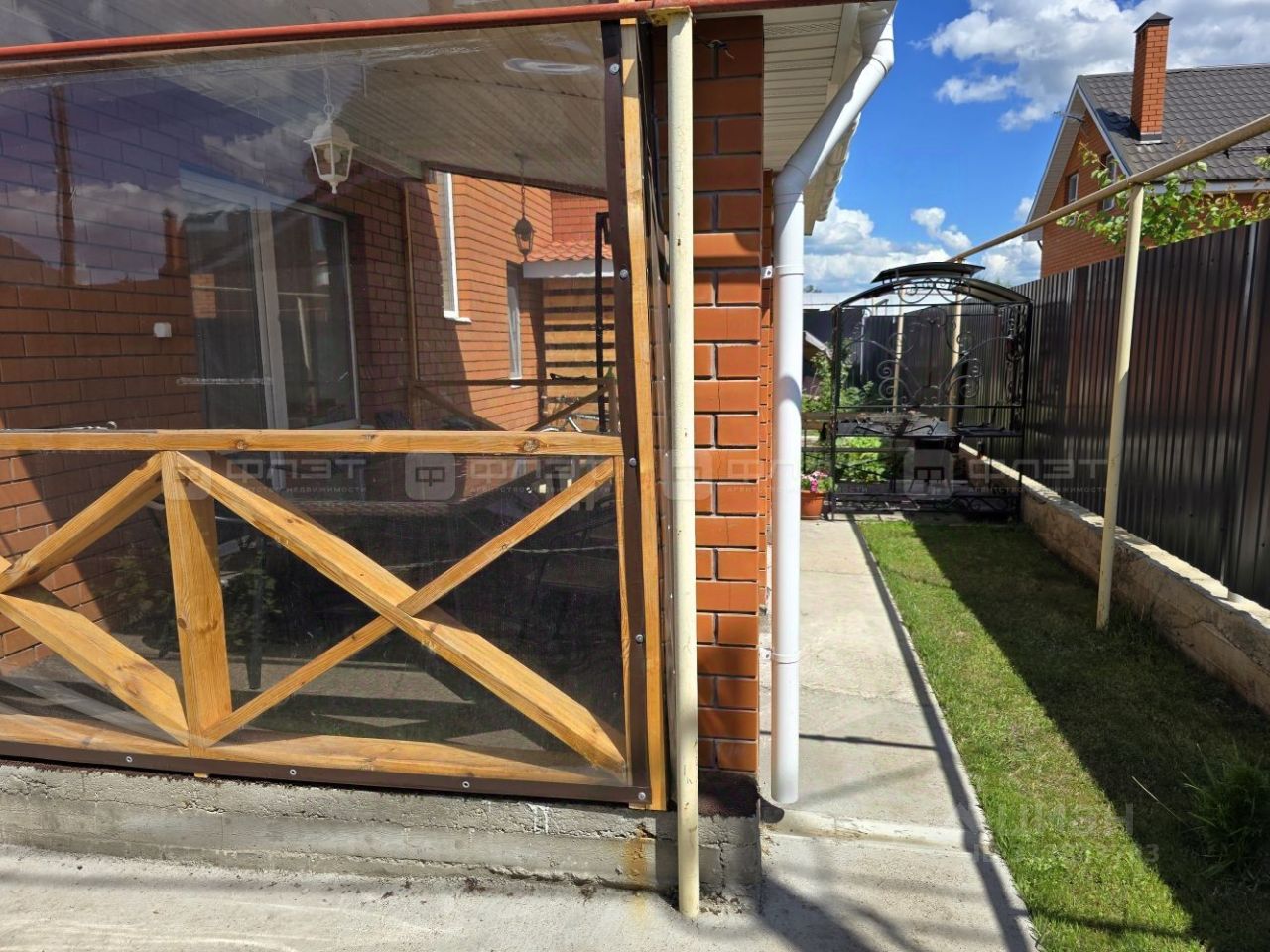 Двор полностью обустроен. Автоматические ворота, забор и видеонаблюдение по всему периметру.