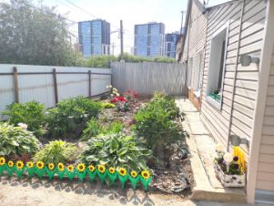 На участке расположены бревенчатая баня, хозяйственный блок и гараж. Участок огорожен забором, отмежеван и ухожен, с насаждениями.