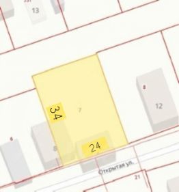 Участок расположен в зеленой зоне, на улице Открытая, асфальтированная дорога и широкая улица.