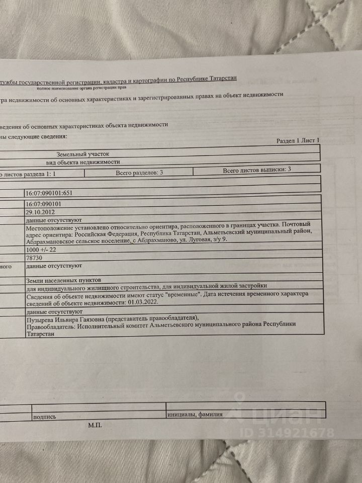 Кадастровый номер участка 16:07:090101:*** указал продавец