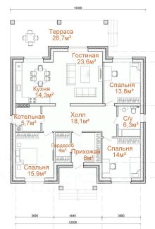 Просторный одноэтажный дом по индивидуальному проекту с панорамными окнами в 15 минутах от Казани.