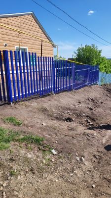 На прилегающем участке были демонтированы старые постройки, а также убраны старые кустарники и деревья. Установлен новый колодец для канализации. Землю в передней части участка экскаватором выровняли по уровню дома для удобства озеленения. Осталось только установить забор и ремонтировать ворота, от нас это подарок, завершим весной как завезем чернозём в сад. На территории также располагается баня.