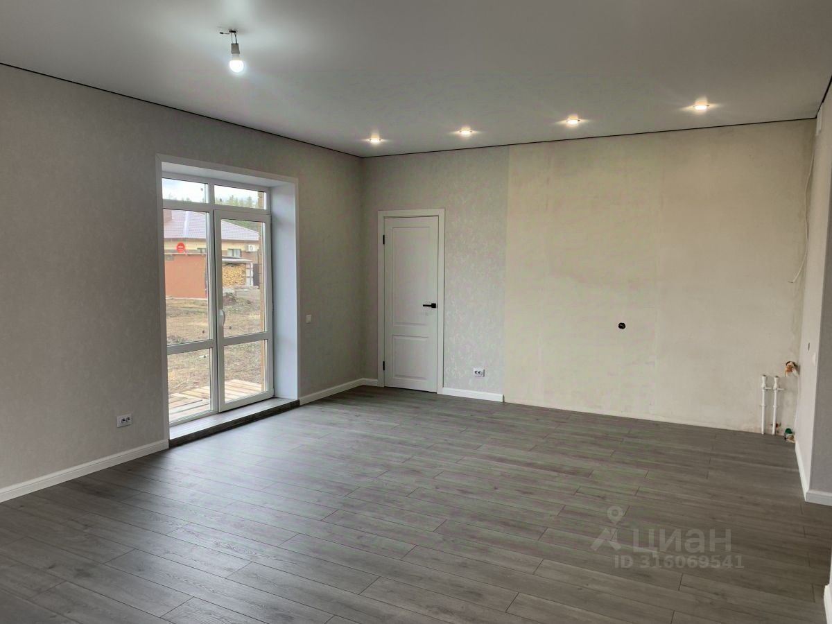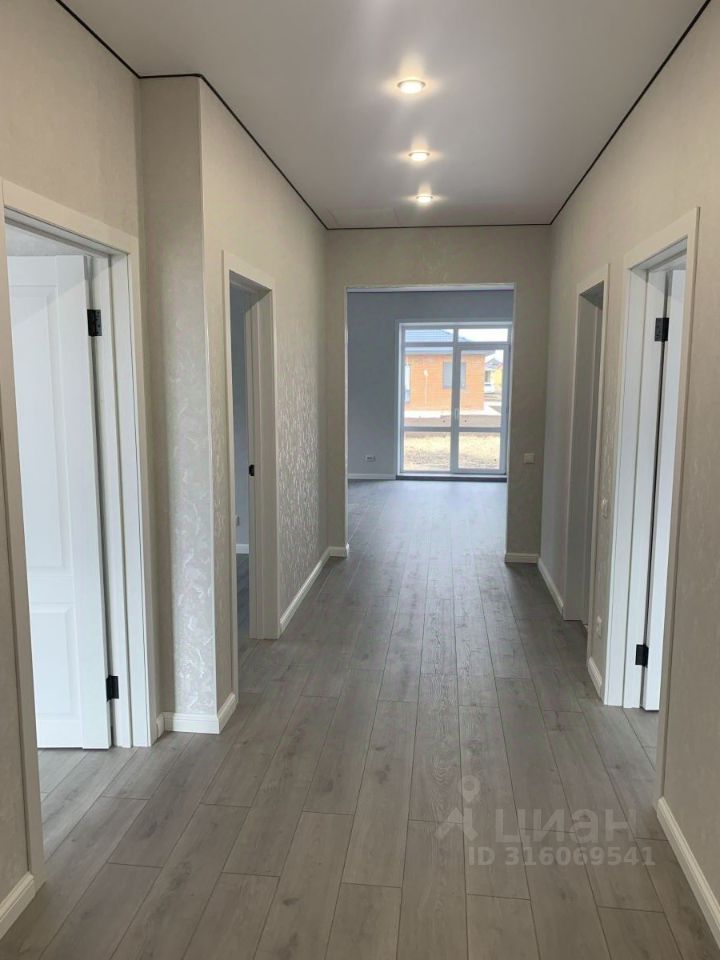 натяжные потолки с освещением, откосы и подоконники на окнах, обои, ламинат на полу в комнатах, санузел и входная часть коридора плитка, установлены розетки и выключатели, по внутреннему периметру дома плинтуса, межкомнатные двери,.