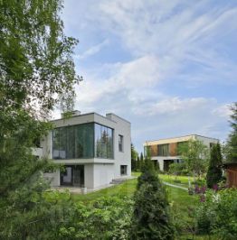 Витражные окна в пол с видом на березовую рощу, наполняющие дом природным светом и создающие ощущение гармонии с природой. Многофункциональное просторное помещение объединяет кухню и гостиную с панорамным остеклением — идеально для семейных посиделок и встреч с друзьями с выходом на просторную террасу.